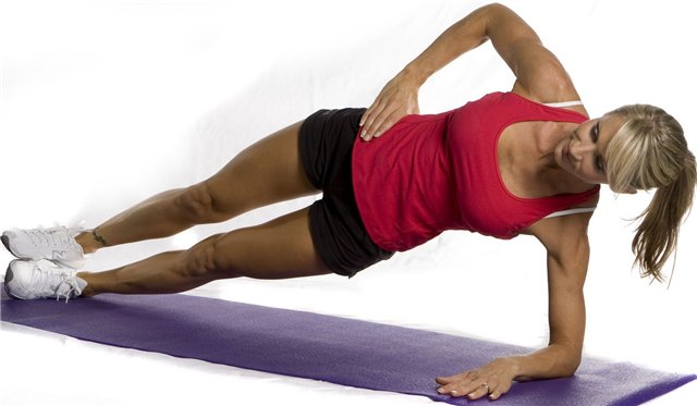 Лягте набок, голова на вытянутой руке. Положите одну ногу на подушку или мяч. Медленно приподнимите вторую ногу и снова опустите. То же самое выполните в другую сторону.